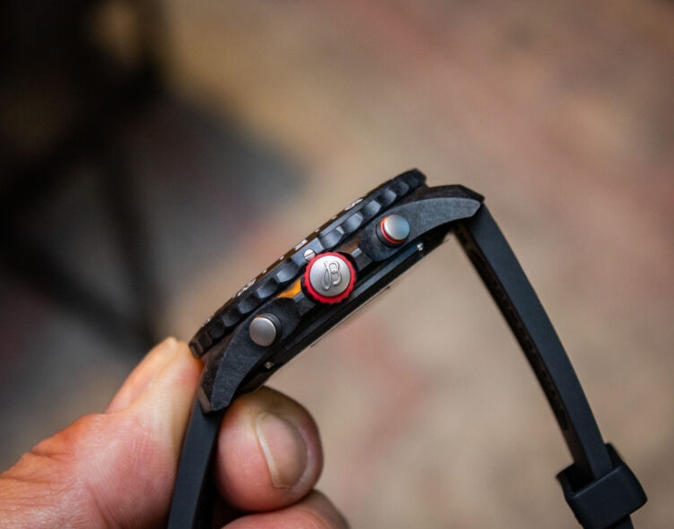 Crafted from Breitlight, which is a carbon-composite material that is 3.3 times lighter than titanium, the Breitling Endurance Pro Stanford University Edition has a total weight of just 35.5 grams (or 64 grams if you include its thick rubber strap), and since it is based upon the foundation of the full-size Endurance Pro, it measures 44mm in diameter by 12.5mm thick, with 22mm lugs and an overall lug-to-lug profile of 52.49mm. Just like the rest of the Endurance Pro collection (including the mid-size 38mm models), the top of the Stanford University Edition’s case is furnished by a flat anti-reflective crystal surrounded by a bi-directional bezel with a compass scale, and the right-hand side of the AAA replica Breitling watches feature a signed crown set between a pair of chronograph pushers. Additionally, water resistance comes in at the same 100 meters that is offered by the rest of the Endurance Pro collection, and both the rotating bezel ring and screw-on caseback are crafted from Breitlight in order to help keep weight to a minimum.